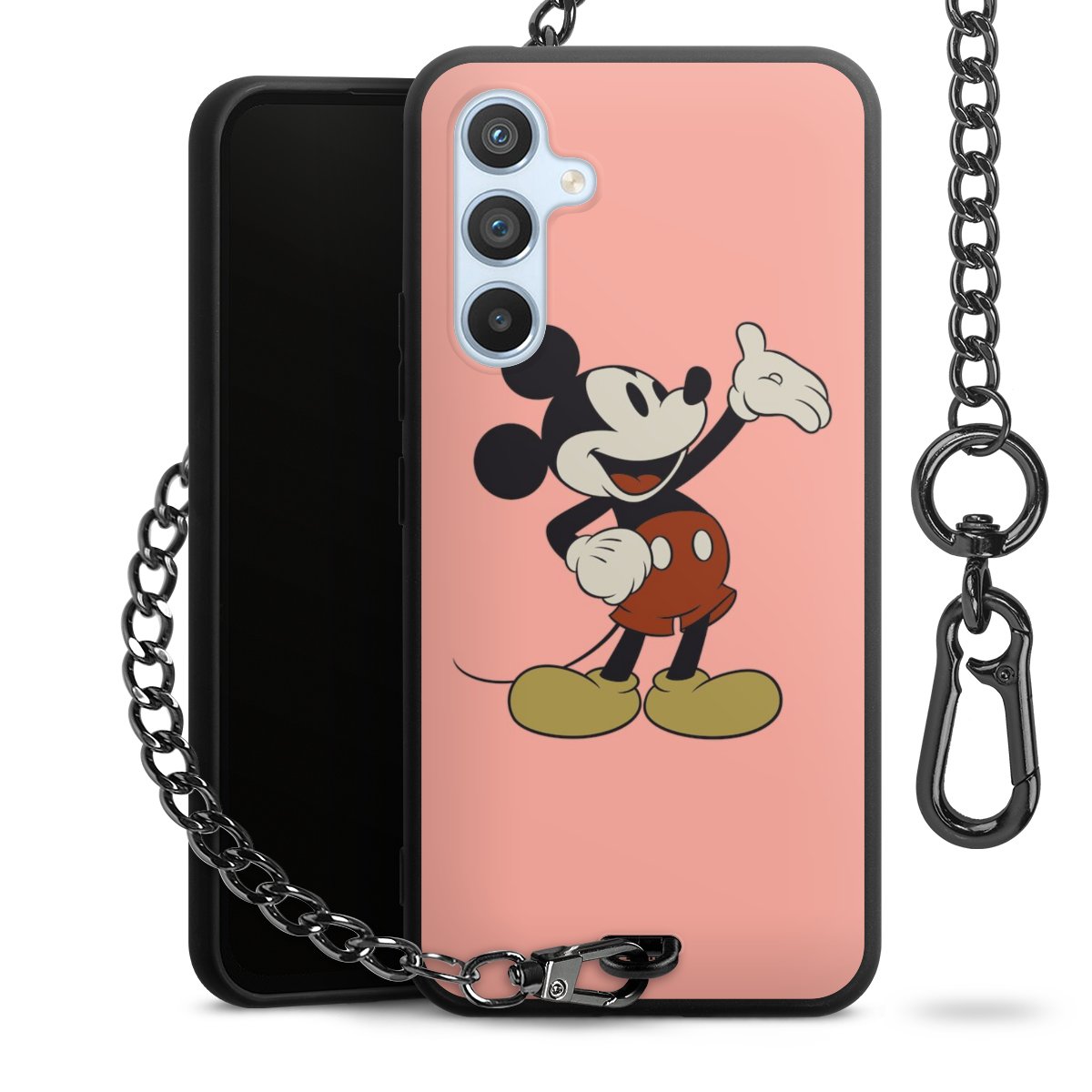 • Mattschwarze Handyhülle mit Metallkette