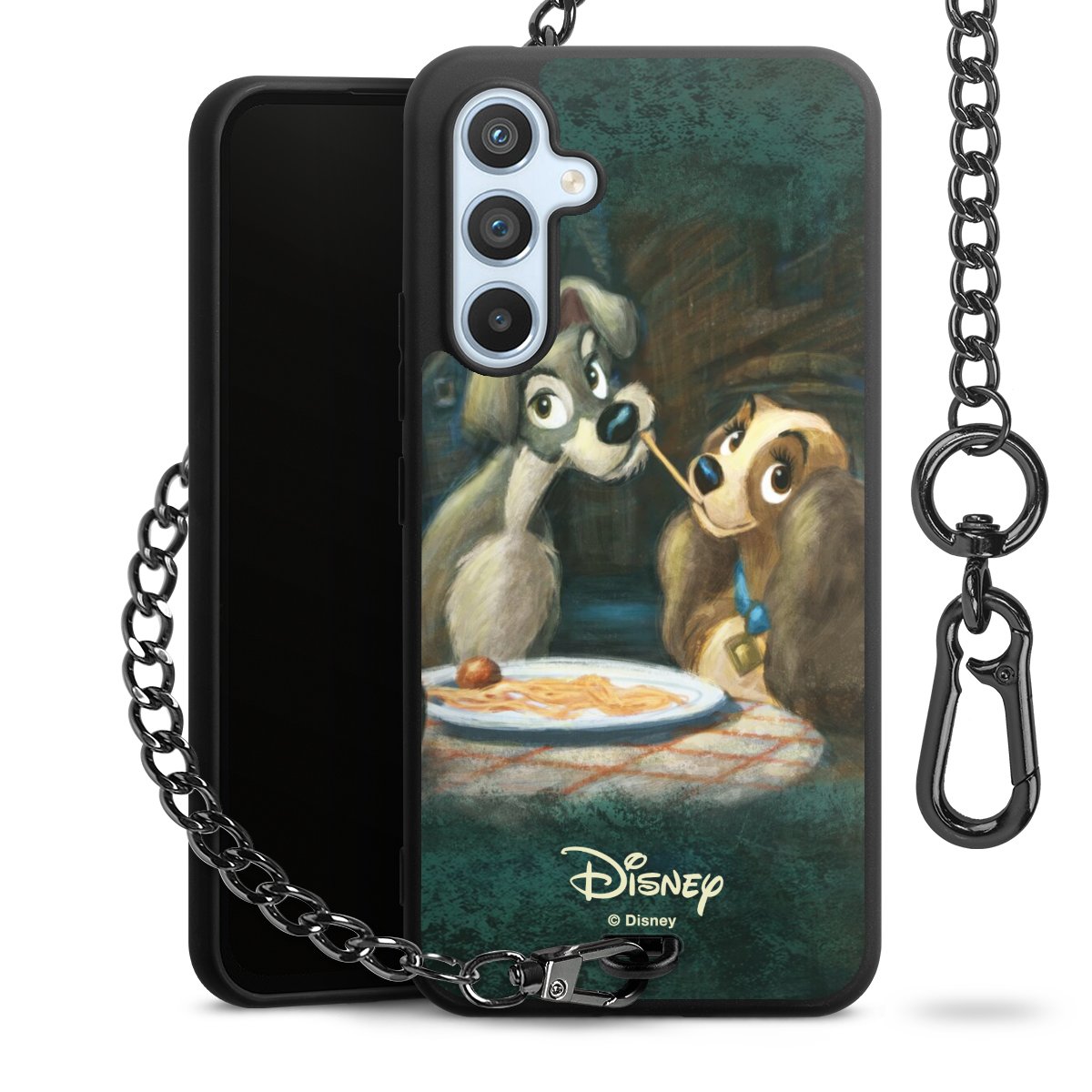 • Mattschwarze Handyhülle mit Metallkette