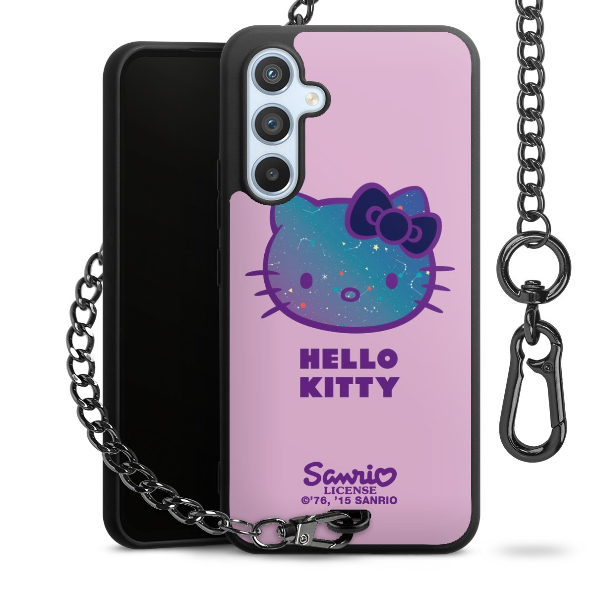Die Handyhülle verfügt über eine mittig am unteren Rand platzierte Öse, an der die Metallkette stabil befestigt ist. Bestelle die Hülle einfach für Dein Smartphone-Modell, dann passt sie wie angegossen und Du brauchst sie bloß einmal anzudrücken. Handy in die Tasche, Karabiner an den Hosenbund – schon kann die Party starten.