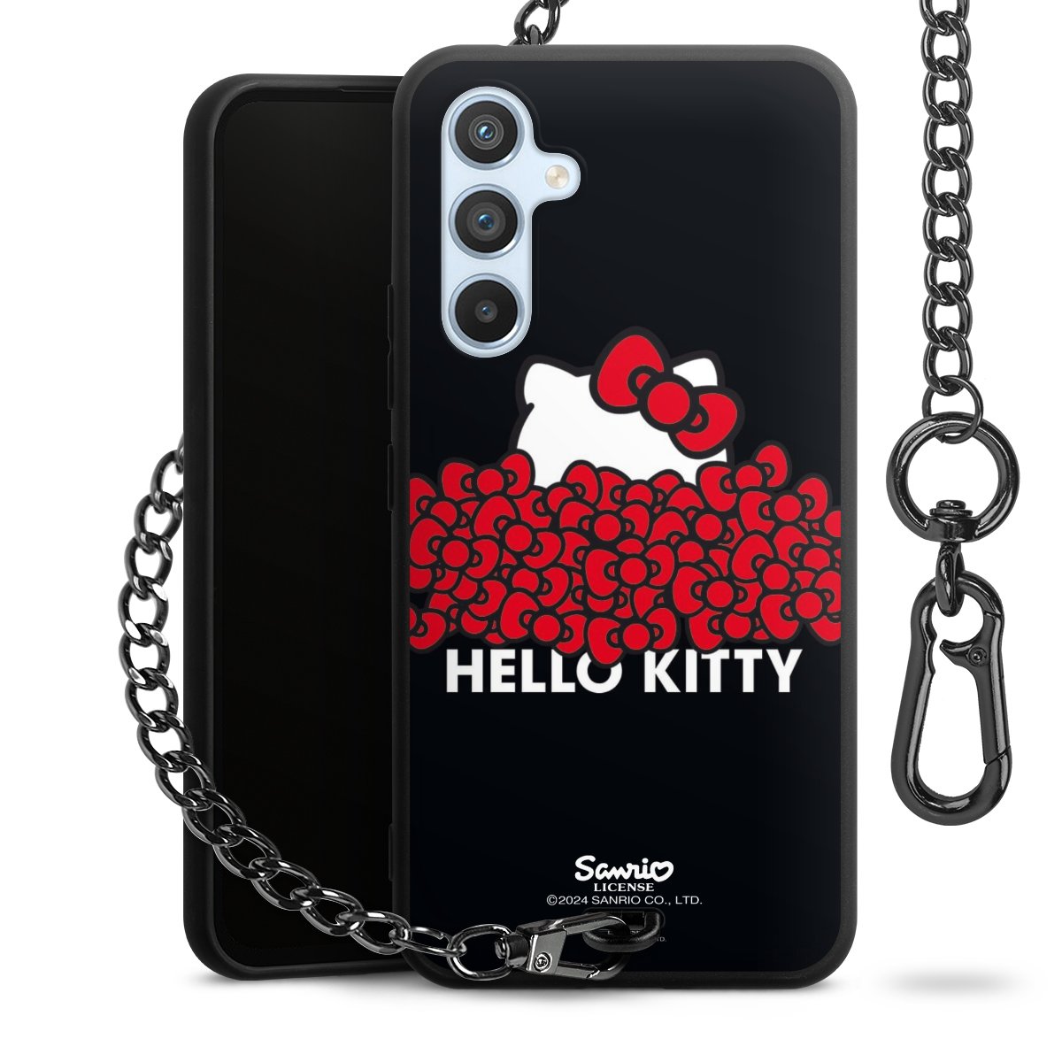 Die mattschwarze Silikon-Handyhülle besteht aus robustem TPU (thermoplastisches Polyurethan). Sie ist flexibel und schützt Dein Smartphone vor Stößen und Kratzern. Die Kette sowie der Karabinerhaken sind aus Metall in Gunmetal-Optik gefertigt. Für dieses Produkt kommen ausschließlich TÜV-geprüfte Materialien zum Einsatz.