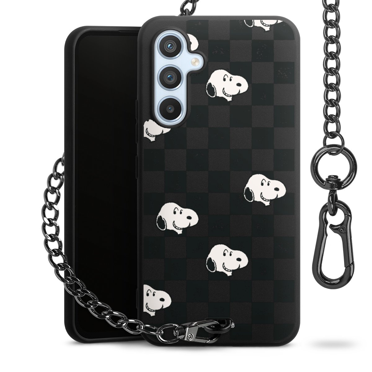 • Mattschwarze Handyhülle mit Metallkette