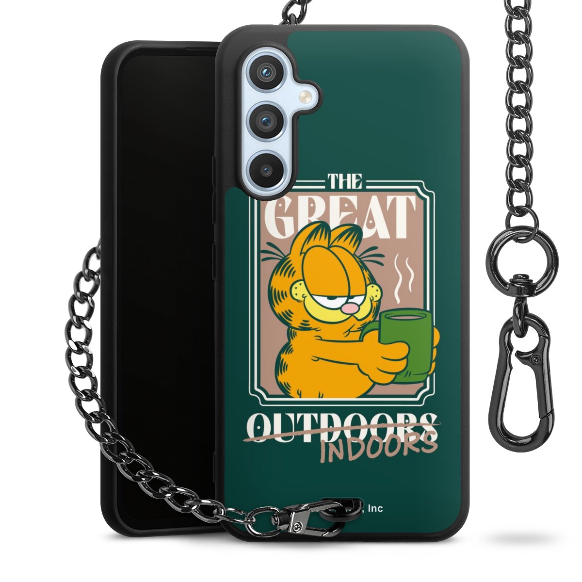 - Mattschwarze Handyhülle mit Metallkette