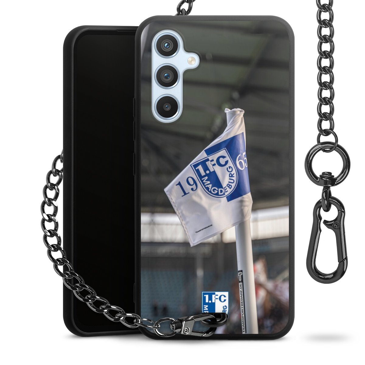 • Mattschwarze Handyhülle mit Metallkette
