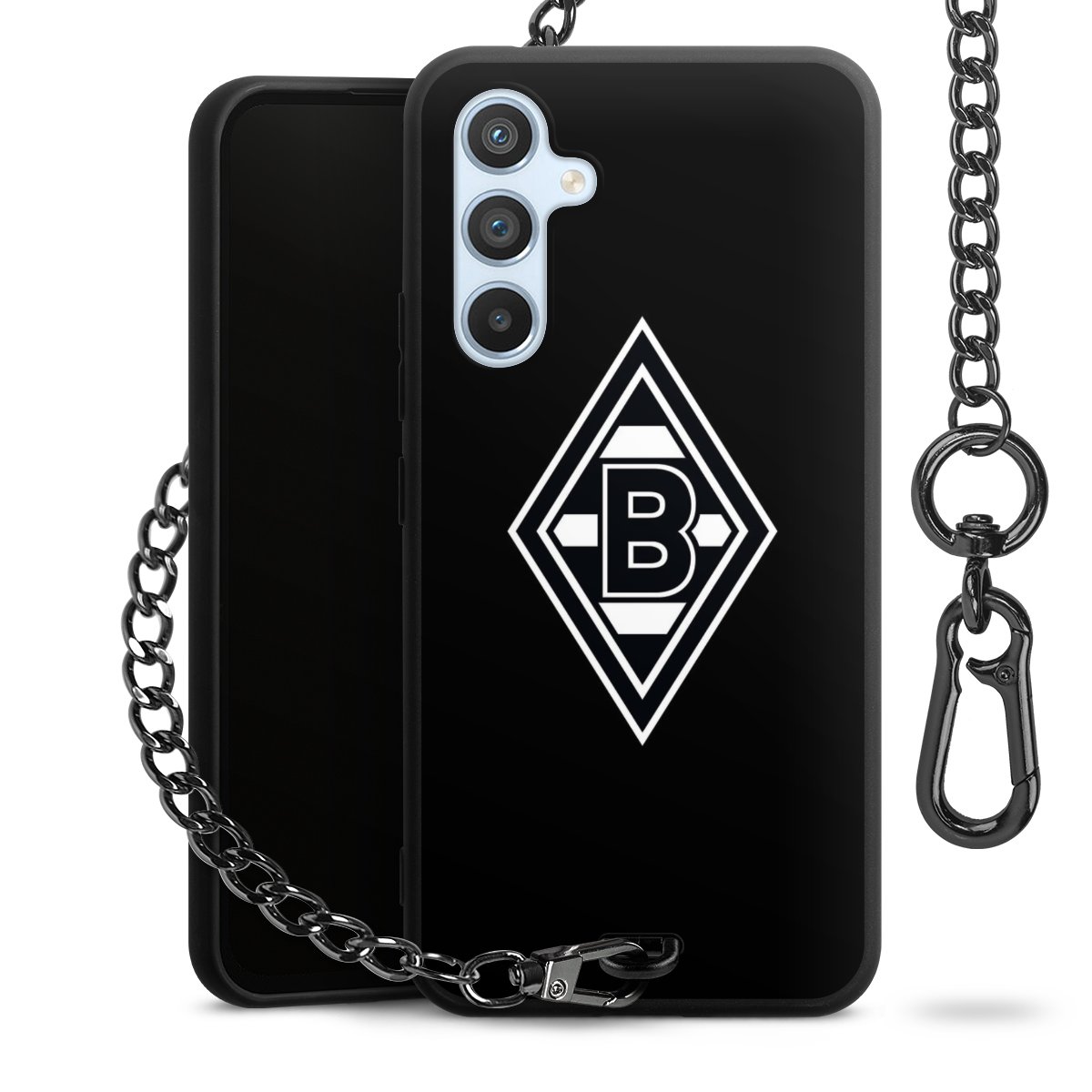 • Mattschwarze Handyhülle mit Metallkette