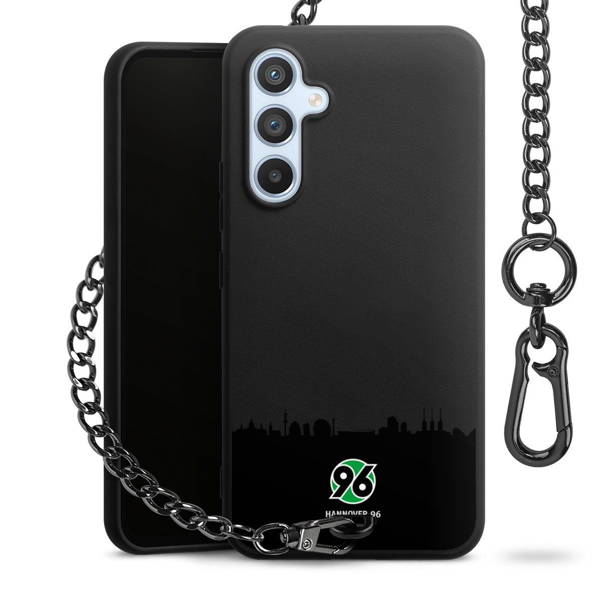 Die mattschwarze Silikon-Handyhülle besteht aus robustem TPU (thermoplastisches Polyurethan). Sie ist flexibel und schützt Dein Smartphone vor Stößen und Kratzern. Die Kette sowie der Karabinerhaken sind aus Metall in Gunmetal-Optik gefertigt. Für dieses Produkt kommen ausschließlich TÜV-geprüfte Materialien zum Einsatz.