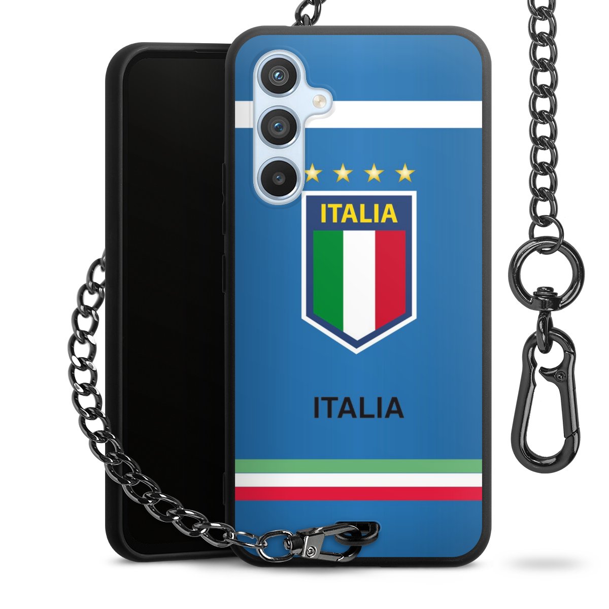 - Mattschwarze Handyhülle mit Metallkette