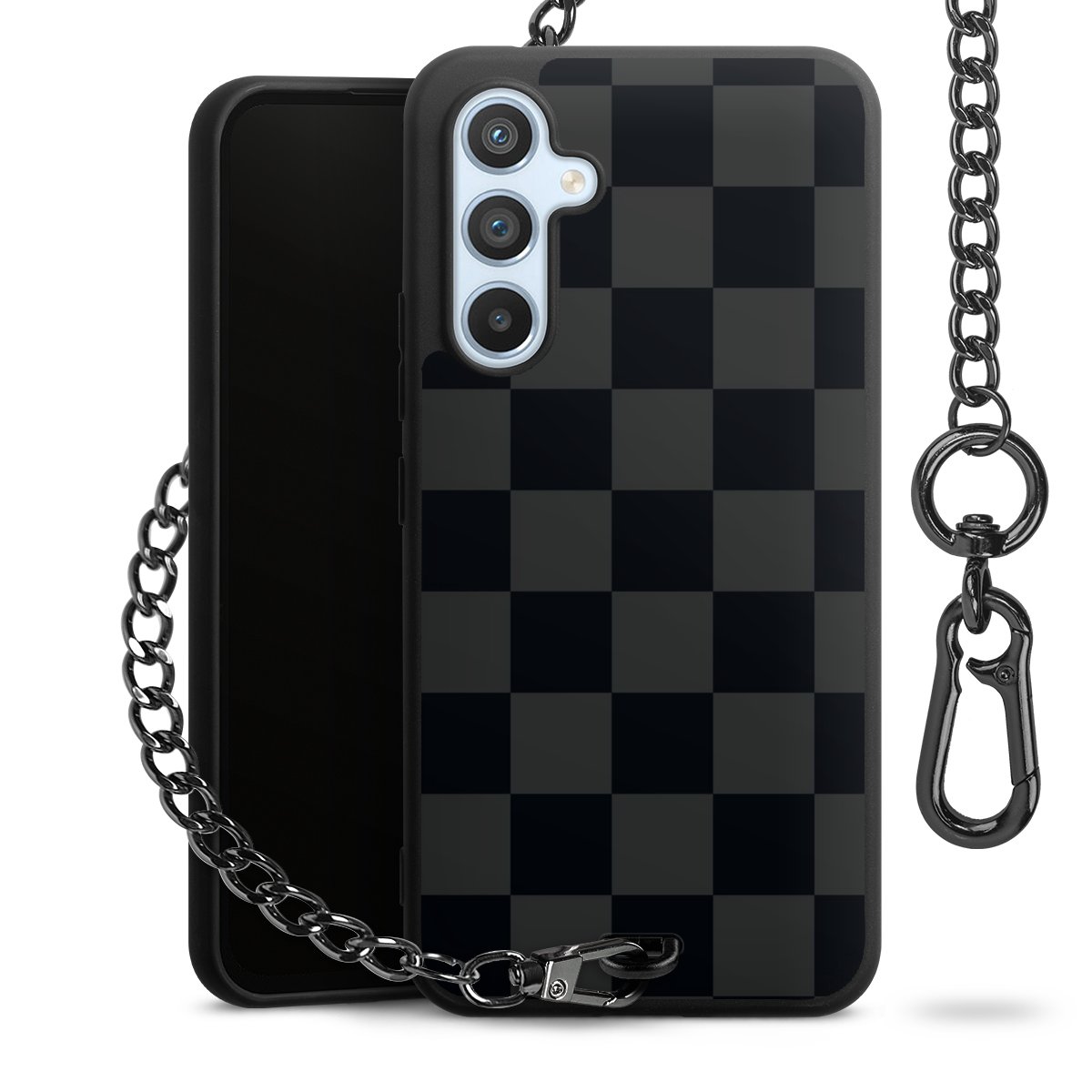 • Mattschwarze Handyhülle mit Metallkette