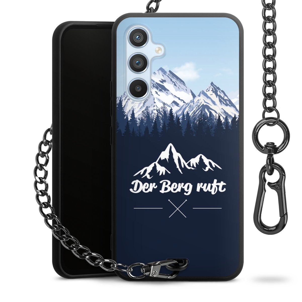 • Mattschwarze Handyhülle mit Metallkette