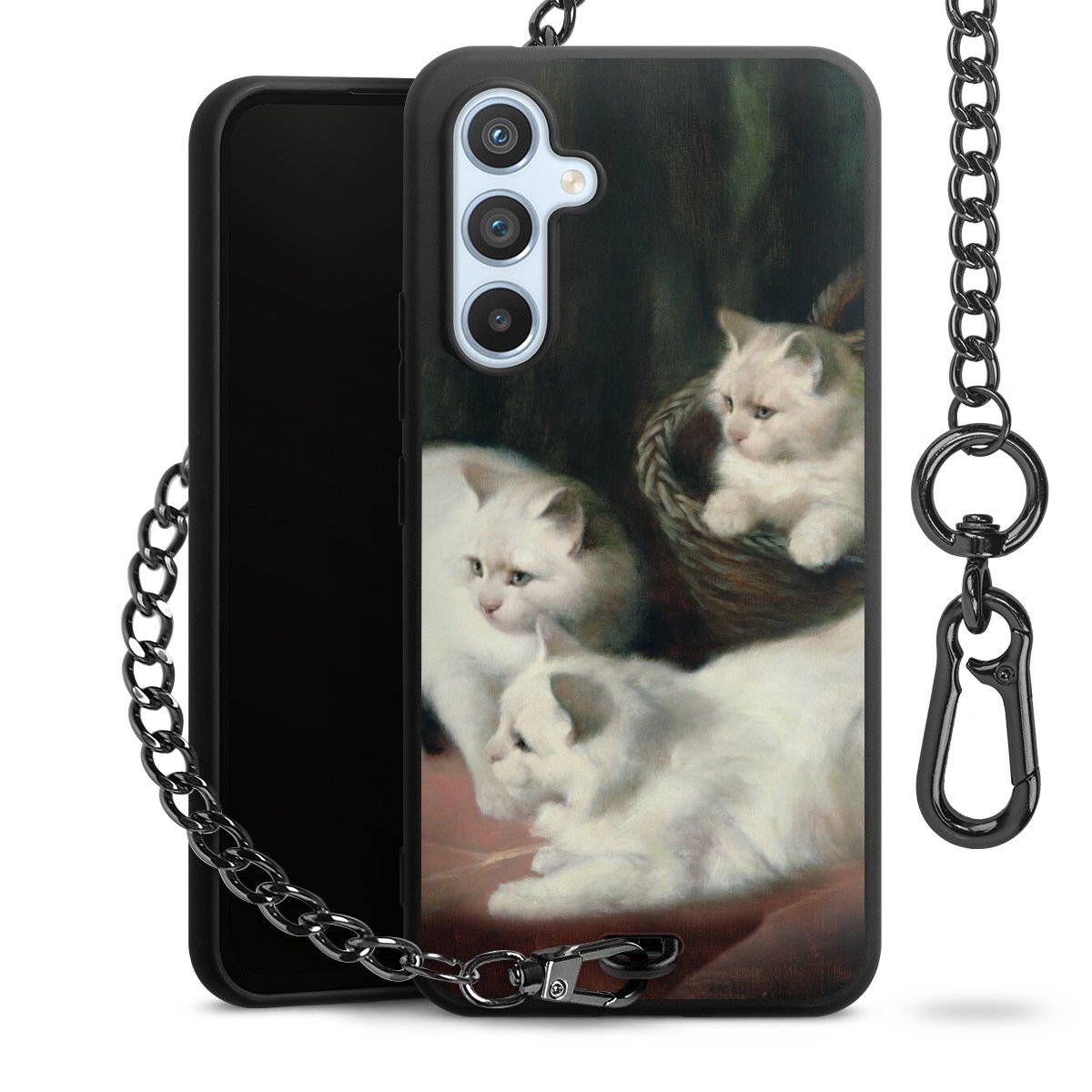 • Mattschwarze Handyhülle mit Metallkette