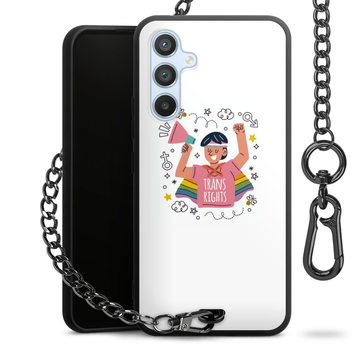 Die mattschwarze Silikon-Handyhülle besteht aus robustem TPU (thermoplastisches Polyurethan). Sie ist flexibel und schützt Dein Smartphone vor Stößen und Kratzern. Die Kette sowie der Karabinerhaken sind aus Metall in Gunmetal-Optik gefertigt. Für dieses Produkt kommen ausschließlich TÜV-geprüfte Materialien zum Einsatz.