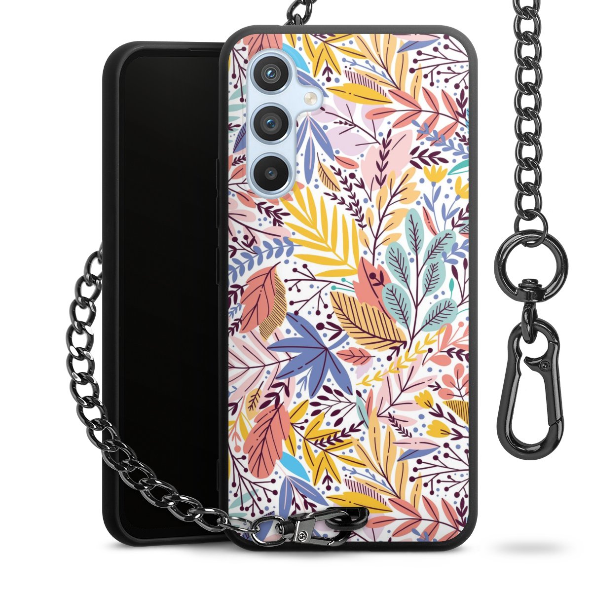 • Mattschwarze Handyhülle mit Metallkette