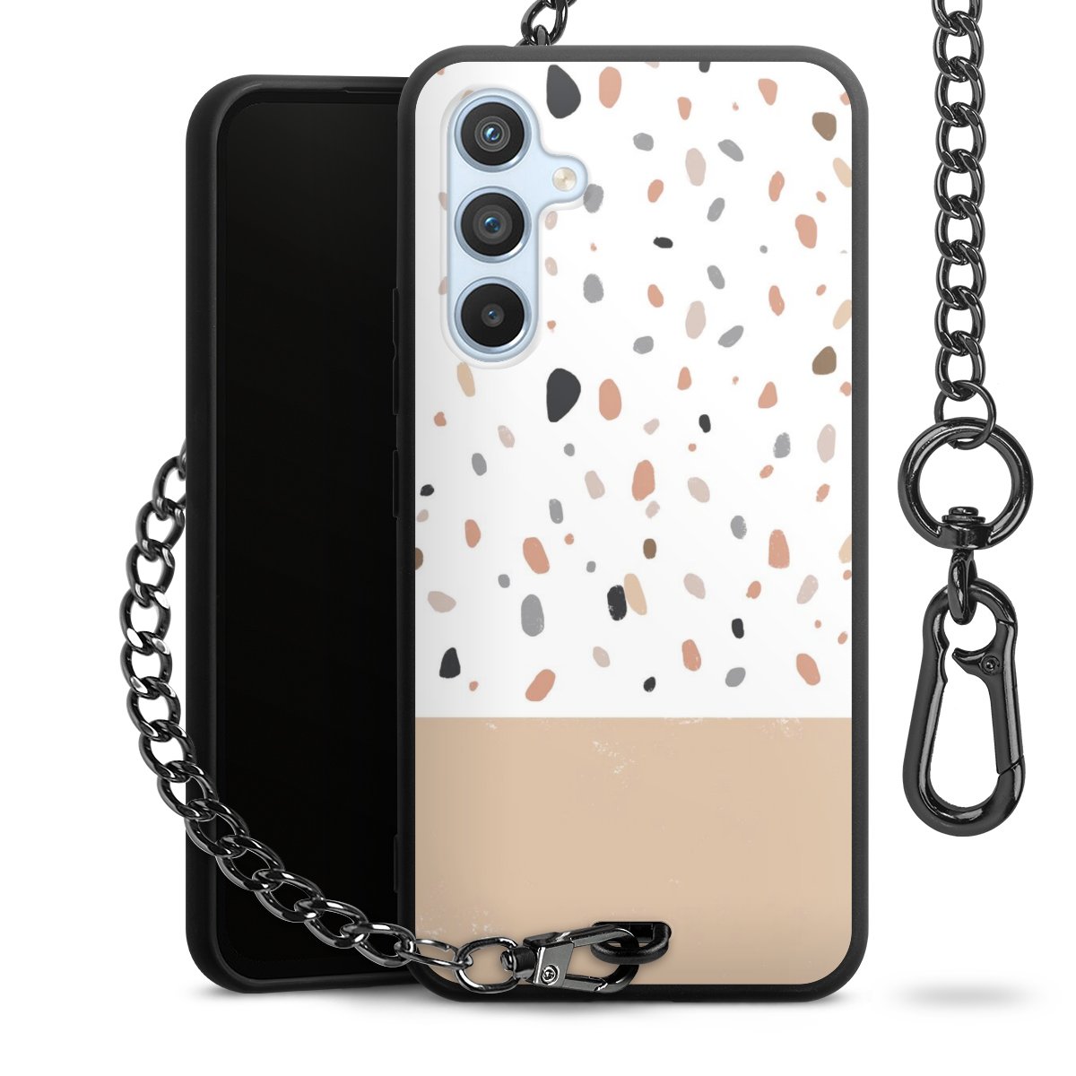 • Mattschwarze Handyhülle mit Metallkette