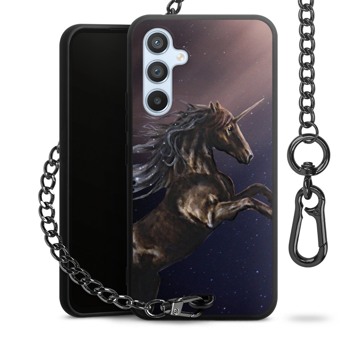 - Mattschwarze Handyhülle mit Metallkette