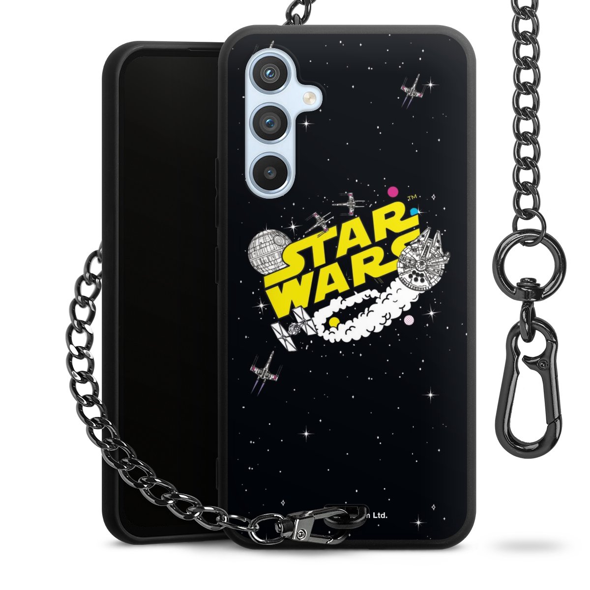 • Mattschwarze Handyhülle mit Metallkette