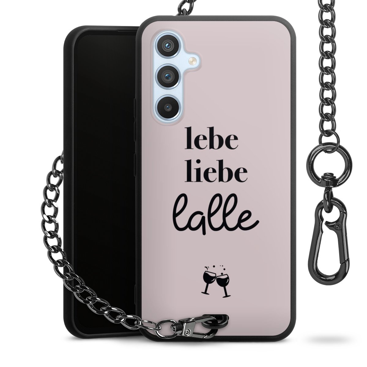 • Mattschwarze Handyhülle mit Metallkette