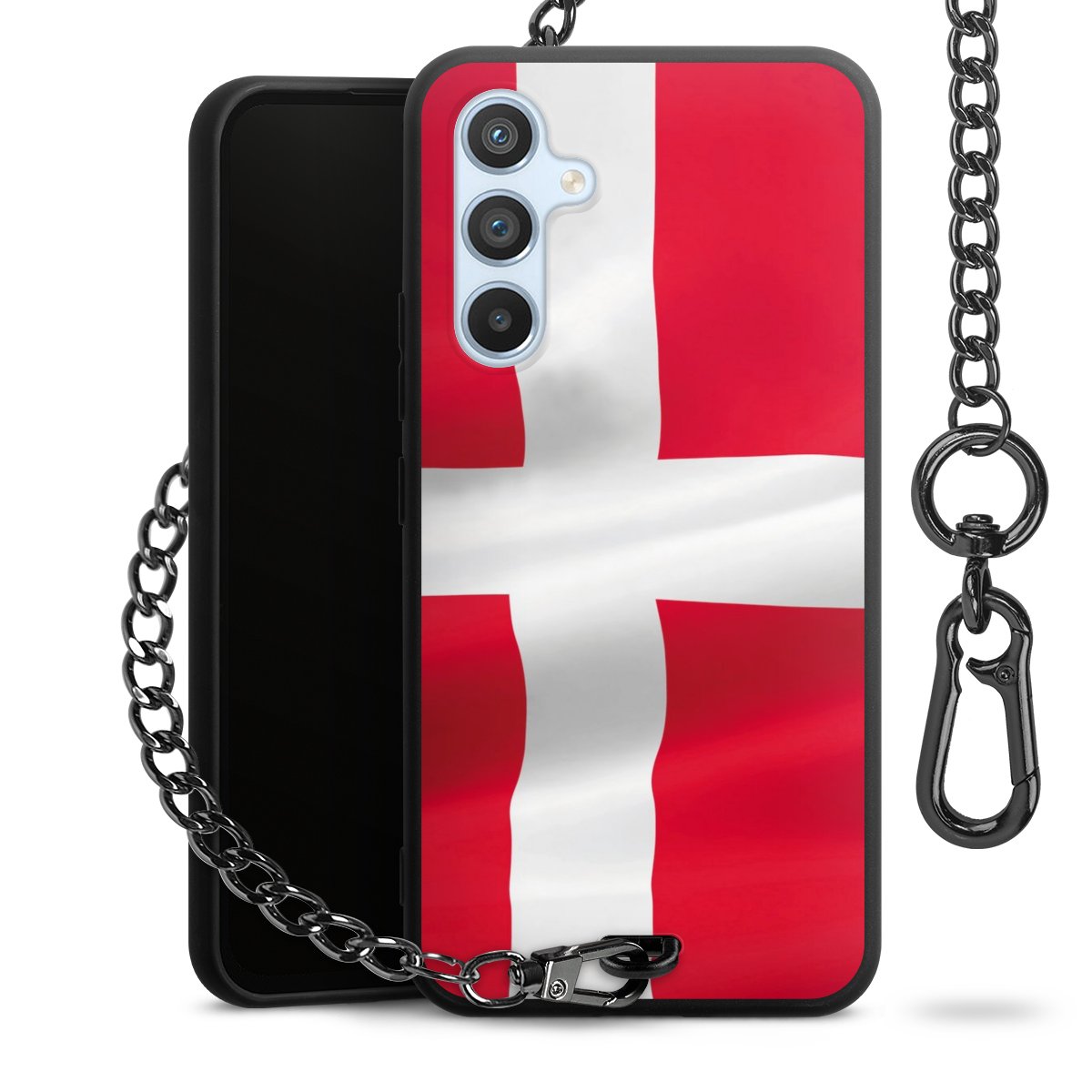 - Mattschwarze Handyhülle mit Metallkette