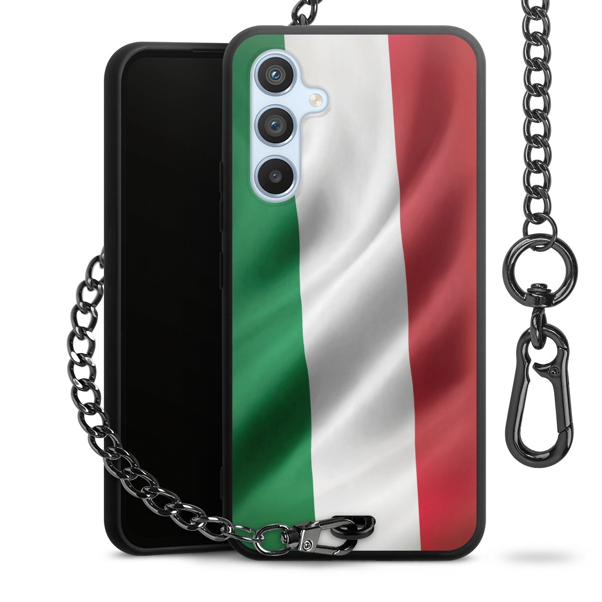 Die mattschwarze Silikon-Handyhülle besteht aus robustem TPU (thermoplastisches Polyurethan). Sie ist flexibel und schützt Dein Smartphone vor Stößen und Kratzern. Die Kette sowie der Karabinerhaken sind aus Metall in Gunmetal-Optik gefertigt. Für dieses Produkt kommen ausschließlich TÜV-geprüfte Materialien zum Einsatz.