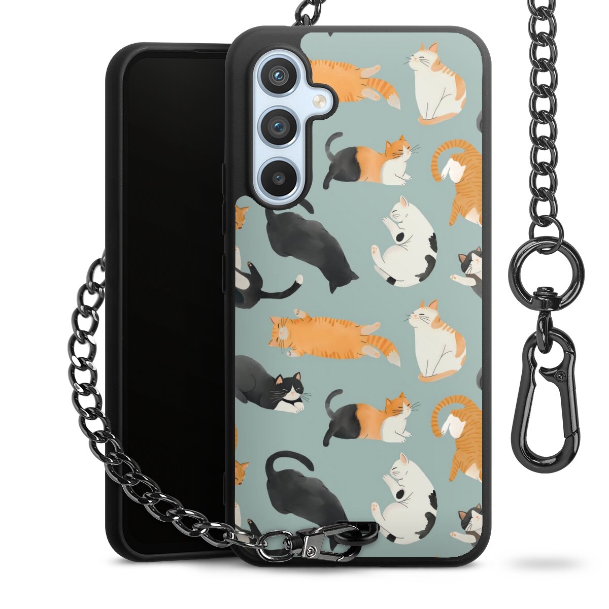 • Mattschwarze Handyhülle mit Metallkette