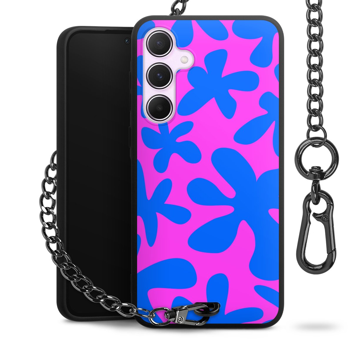 - Mattschwarze Handyhülle mit Metallkette