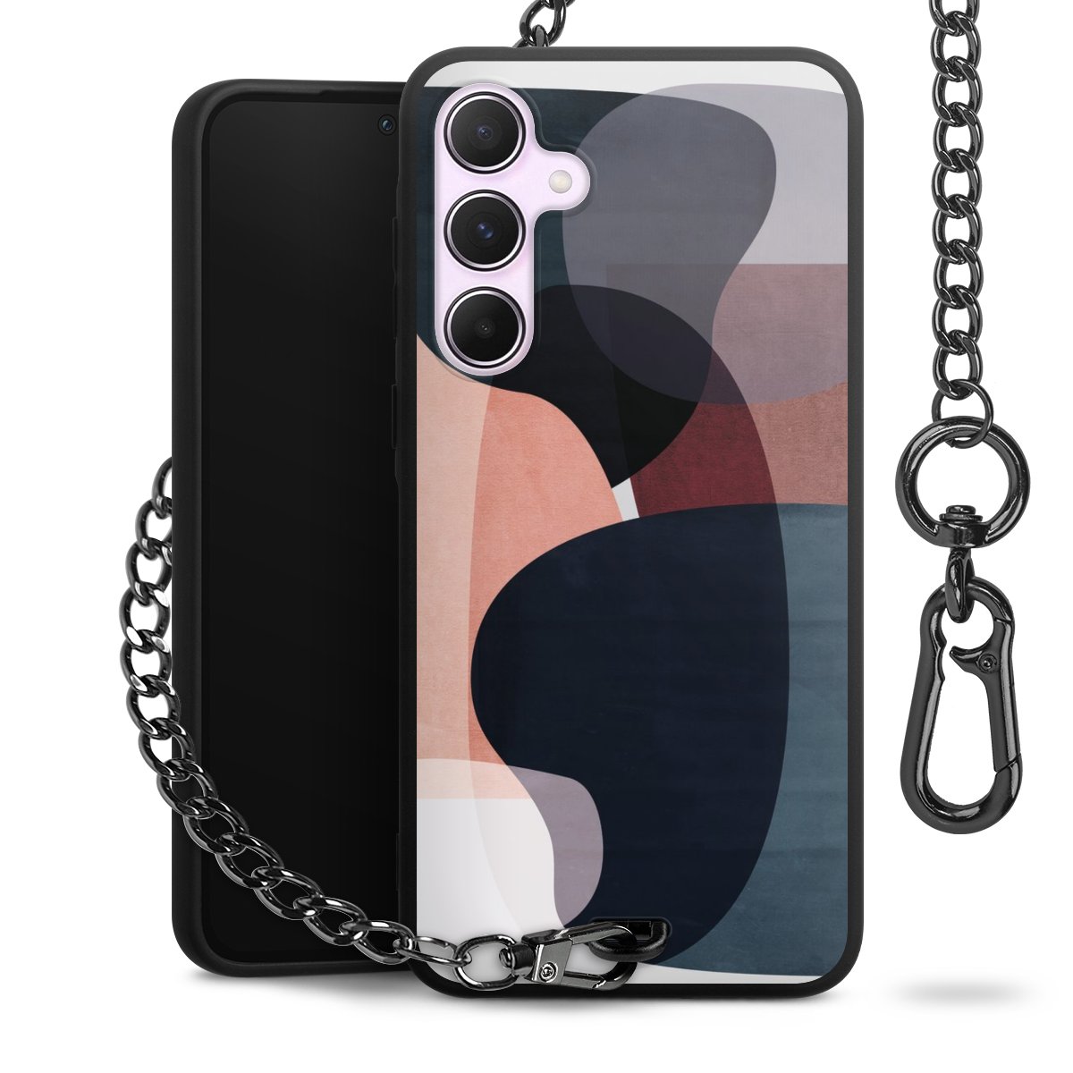• Mattschwarze Handyhülle mit Metallkette