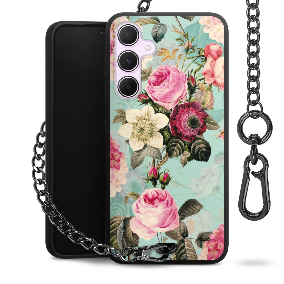 • Mattschwarze Handyhülle mit Metallkette