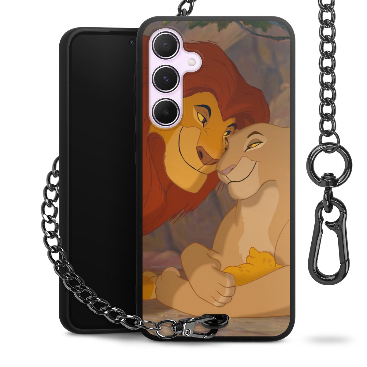 • Mattschwarze Handyhülle mit Metallkette