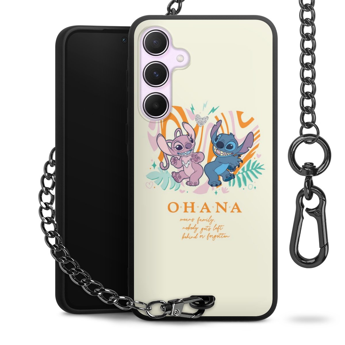 • Mattschwarze Handyhülle mit Metallkette