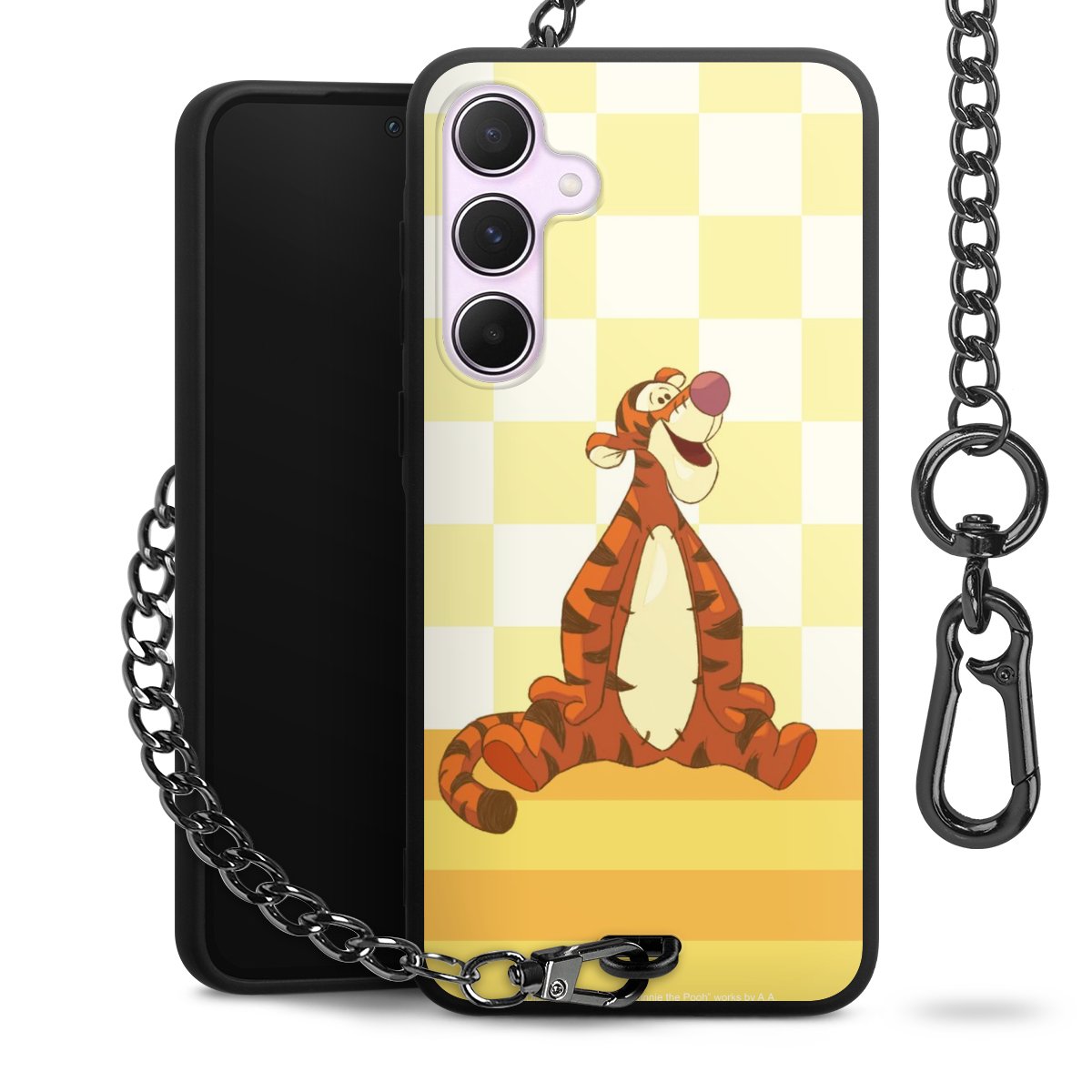 Die mattschwarze Silikon-Handyhülle besteht aus robustem TPU (thermoplastisches Polyurethan). Sie ist flexibel und schützt Dein Smartphone vor Stößen und Kratzern. Die Kette sowie der Karabinerhaken sind aus Metall in Gunmetal-Optik gefertigt. Für dieses Produkt kommen ausschließlich TÜV-geprüfte Materialien zum Einsatz.