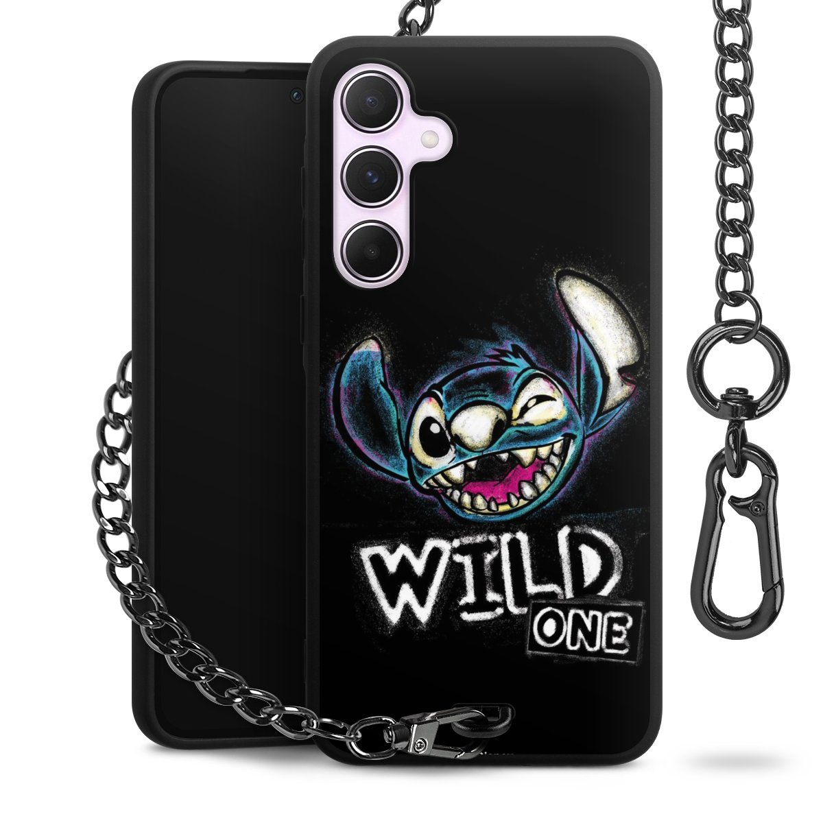 Die Handyhülle verfügt über eine mittig am unteren Rand platzierte Öse, an der die Metallkette stabil befestigt ist. Bestelle die Hülle einfach für Dein Smartphone-Modell, dann passt sie wie angegossen und Du brauchst sie bloß einmal anzudrücken. Handy in die Tasche, Karabiner an den Hosenbund – schon kann die Party starten.