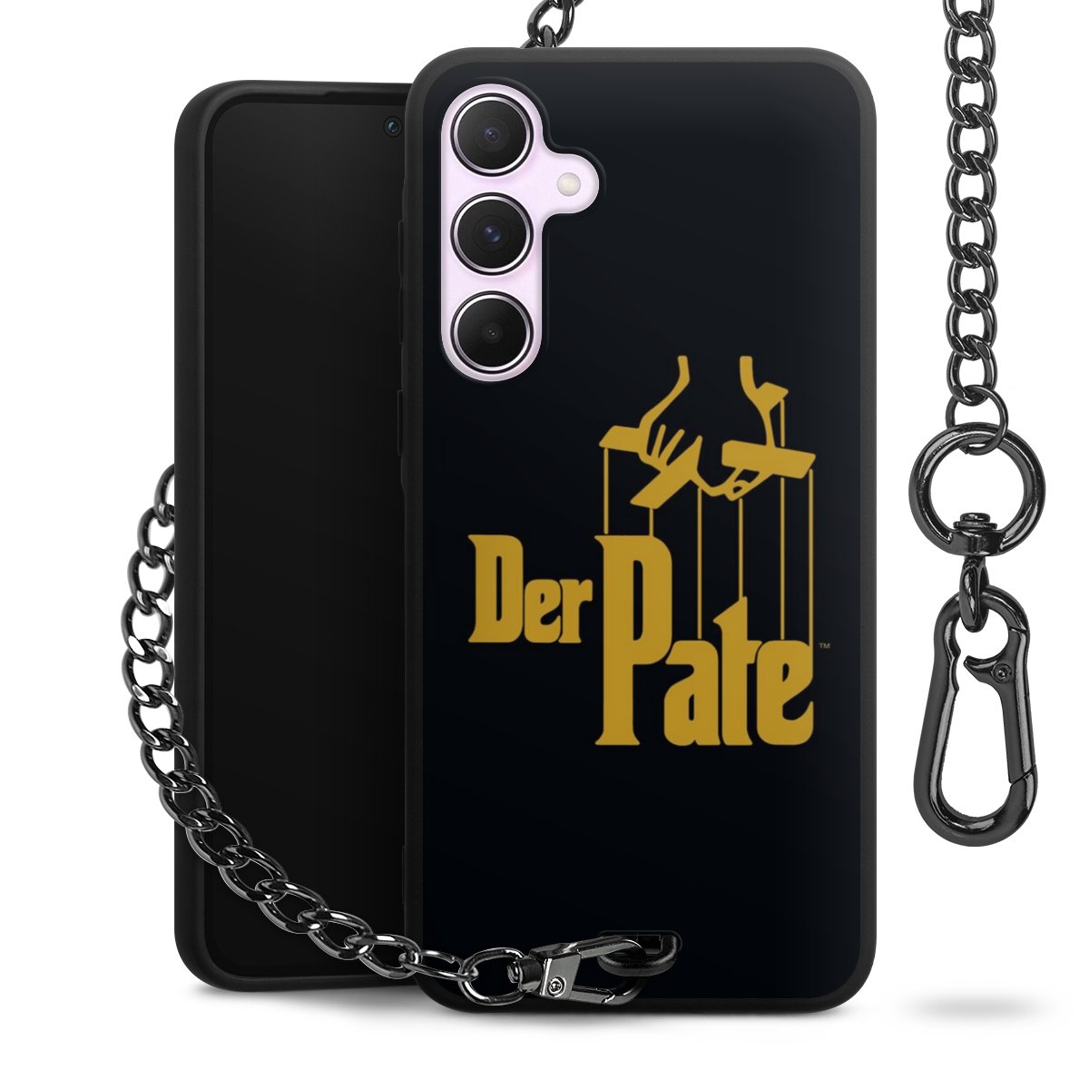 - Mattschwarze Handyhülle mit Metallkette