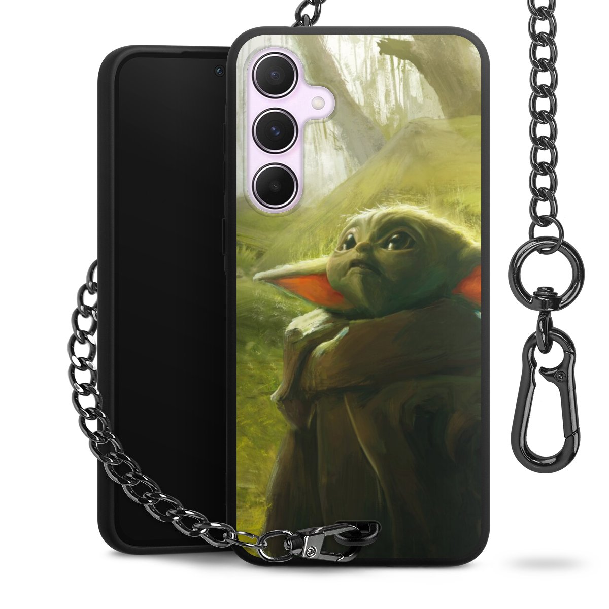 - Mattschwarze Handyhülle mit Metallkette