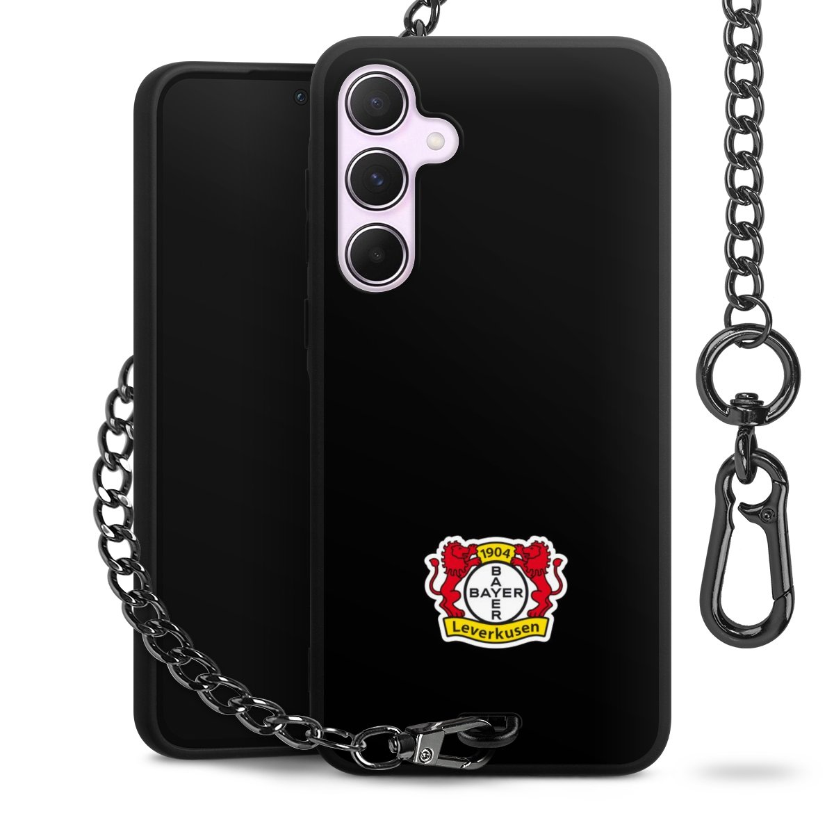 Die mattschwarze Silikon-Handyhülle besteht aus robustem TPU (thermoplastisches Polyurethan). Sie ist flexibel und schützt Dein Smartphone vor Stößen und Kratzern. Die Kette sowie der Karabinerhaken sind aus Metall in Gunmetal-Optik gefertigt. Für dieses Produkt kommen ausschließlich TÜV-geprüfte Materialien zum Einsatz.