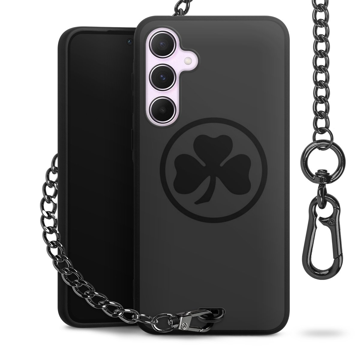 • Mattschwarze Handyhülle mit Metallkette