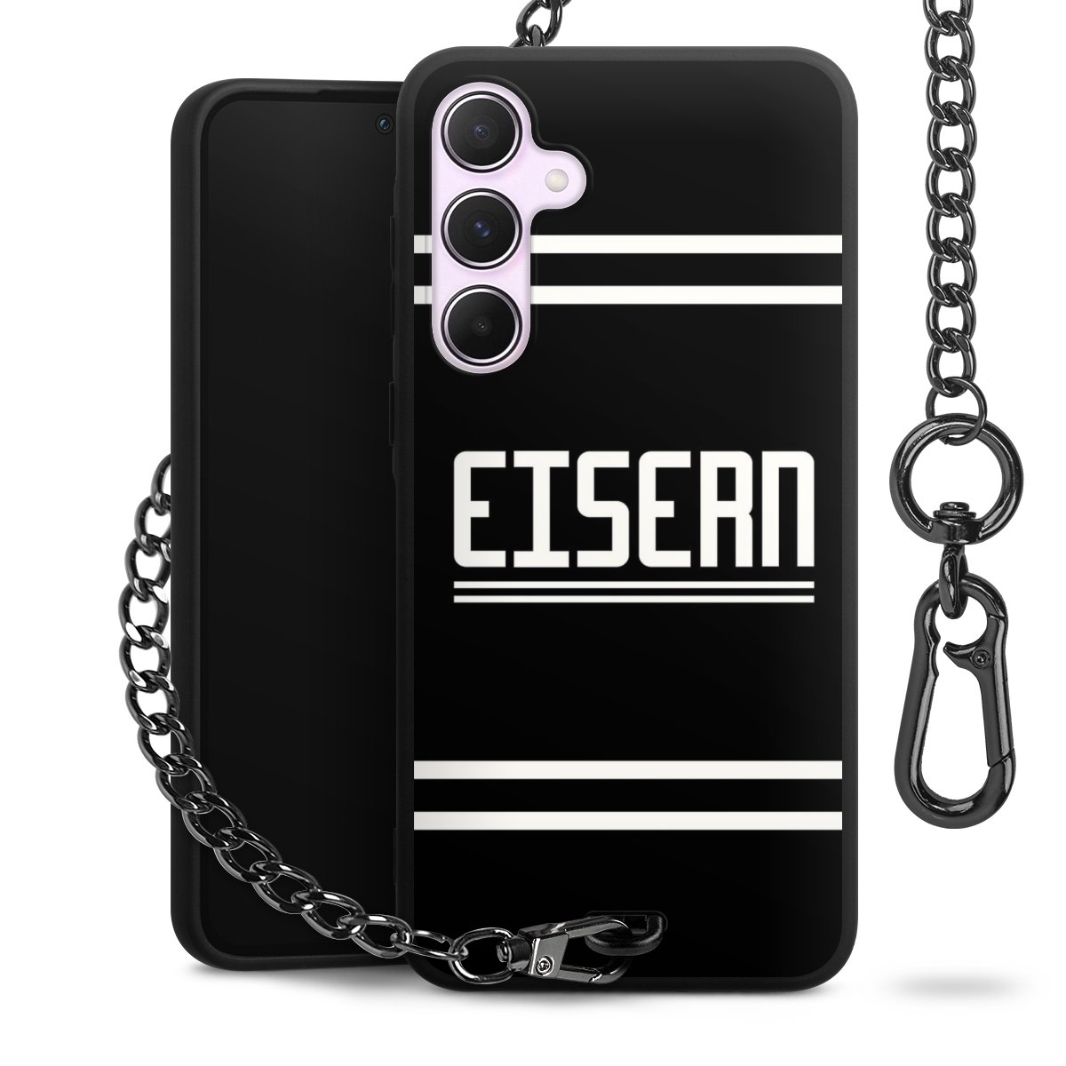• Mattschwarze Handyhülle mit Metallkette