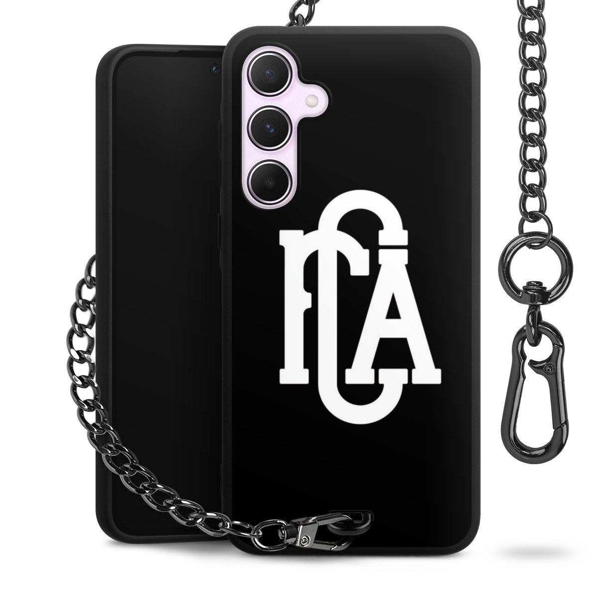 • Mattschwarze Handyhülle mit Metallkette