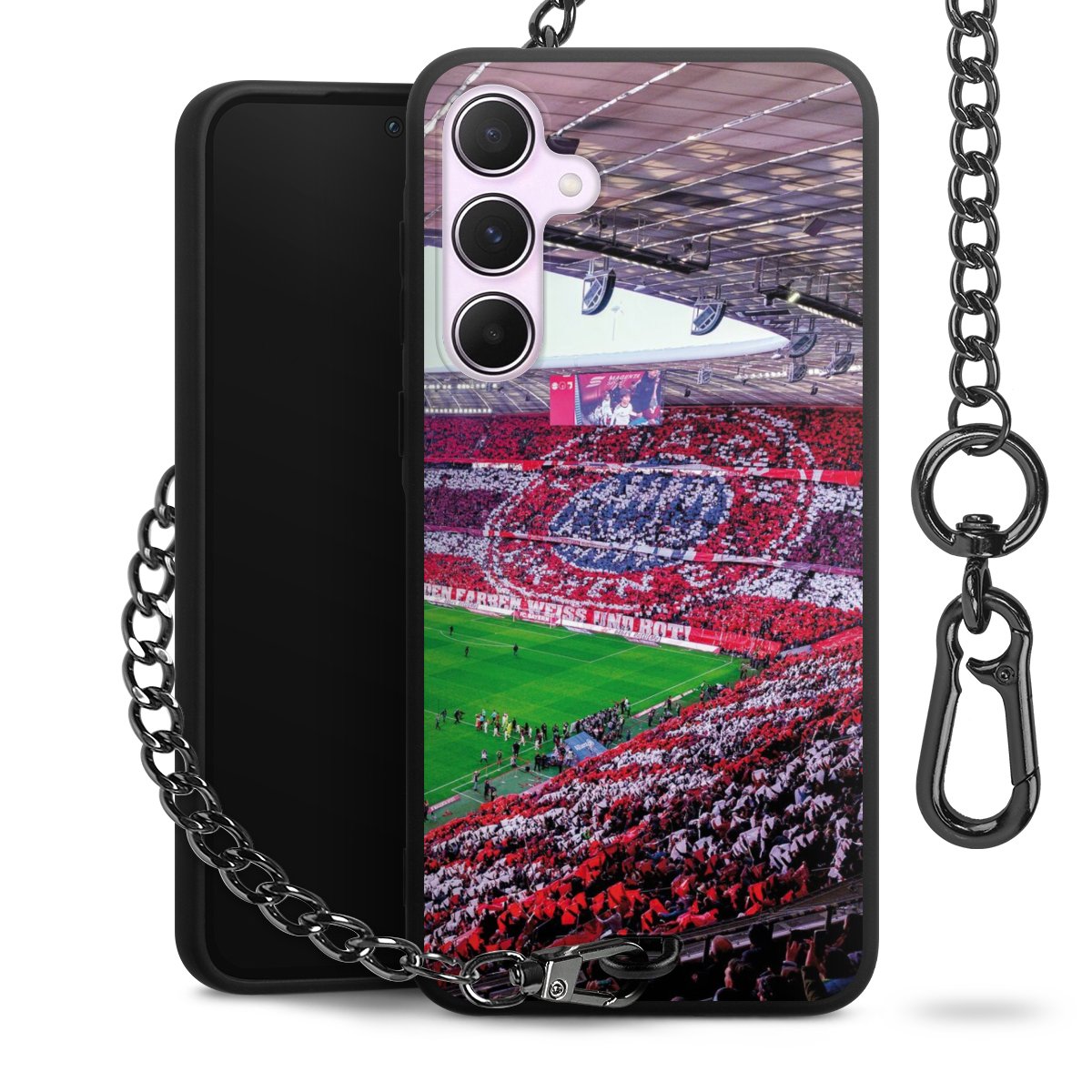 • Mattschwarze Handyhülle mit Metallkette