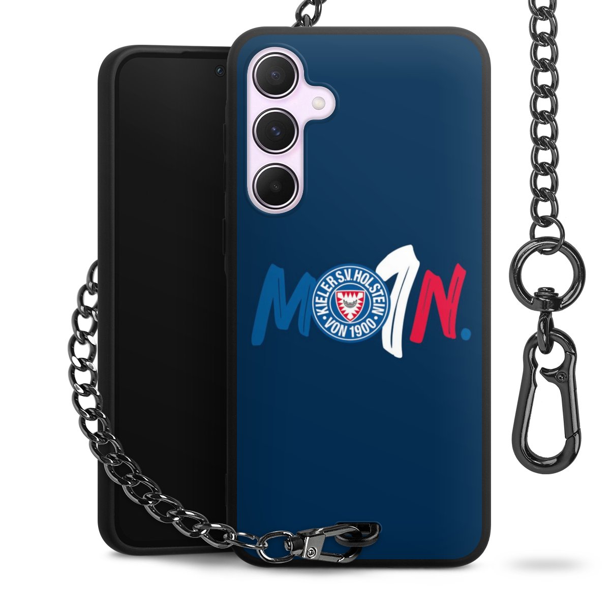 Die mattschwarze Silikon-Handyhülle besteht aus robustem TPU (thermoplastisches Polyurethan). Sie ist flexibel und schützt Dein Smartphone vor Stößen und Kratzern. Die Kette sowie der Karabinerhaken sind aus Metall in Gunmetal-Optik gefertigt. Für dieses Produkt kommen ausschließlich TÜV-geprüfte Materialien zum Einsatz.