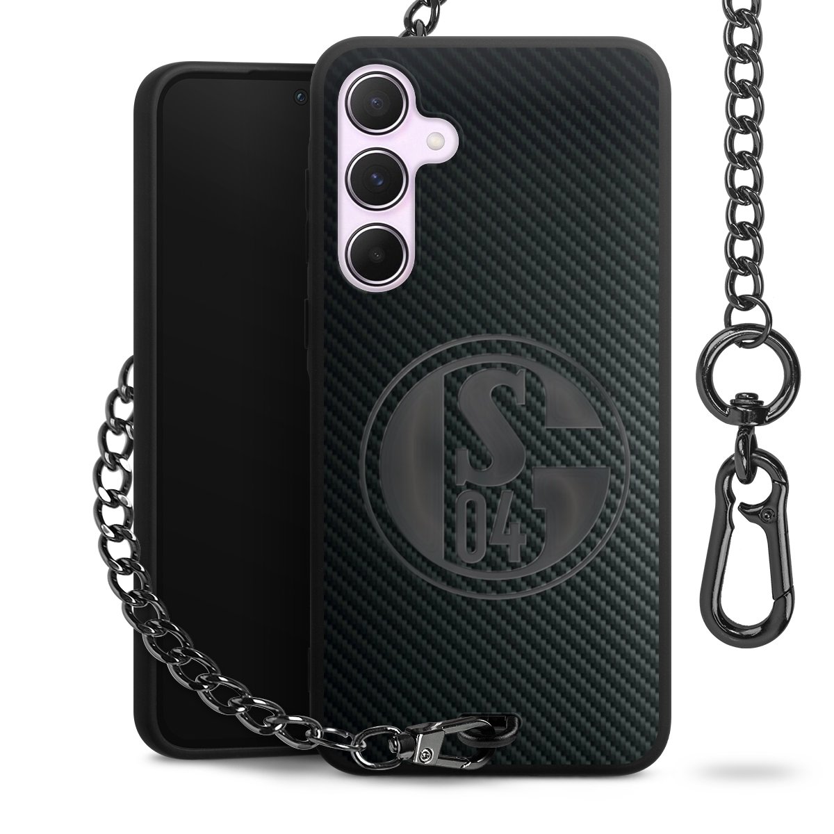 • Mattschwarze Handyhülle mit Metallkette