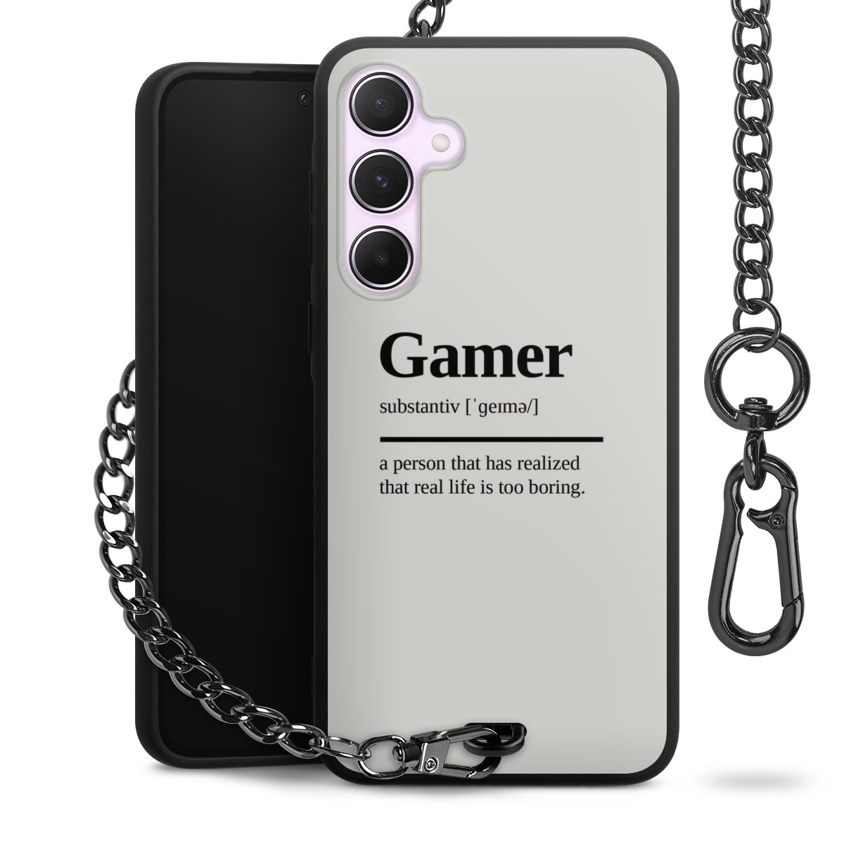 - Mattschwarze Handyhülle mit Metallkette