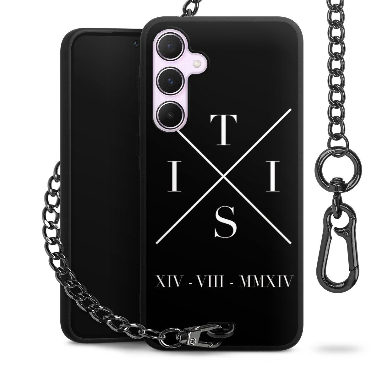 • Mattschwarze Handyhülle mit Metallkette
