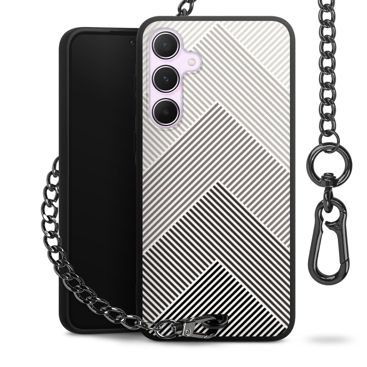 • Mattschwarze Handyhülle mit Metallkette