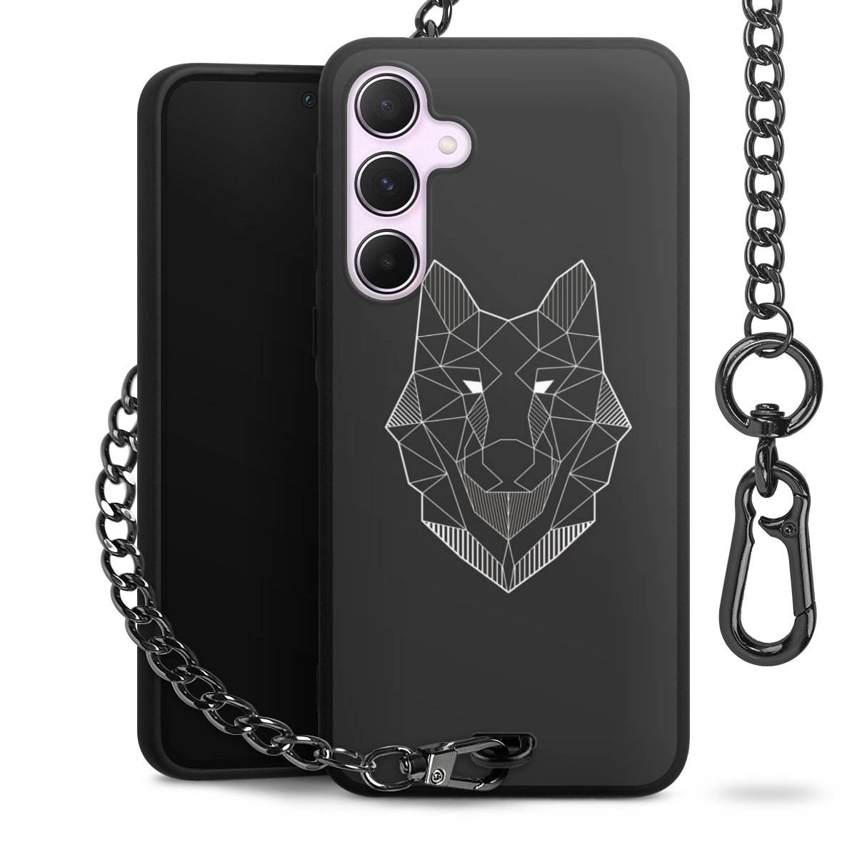 - Mattschwarze Handyhülle mit Metallkette