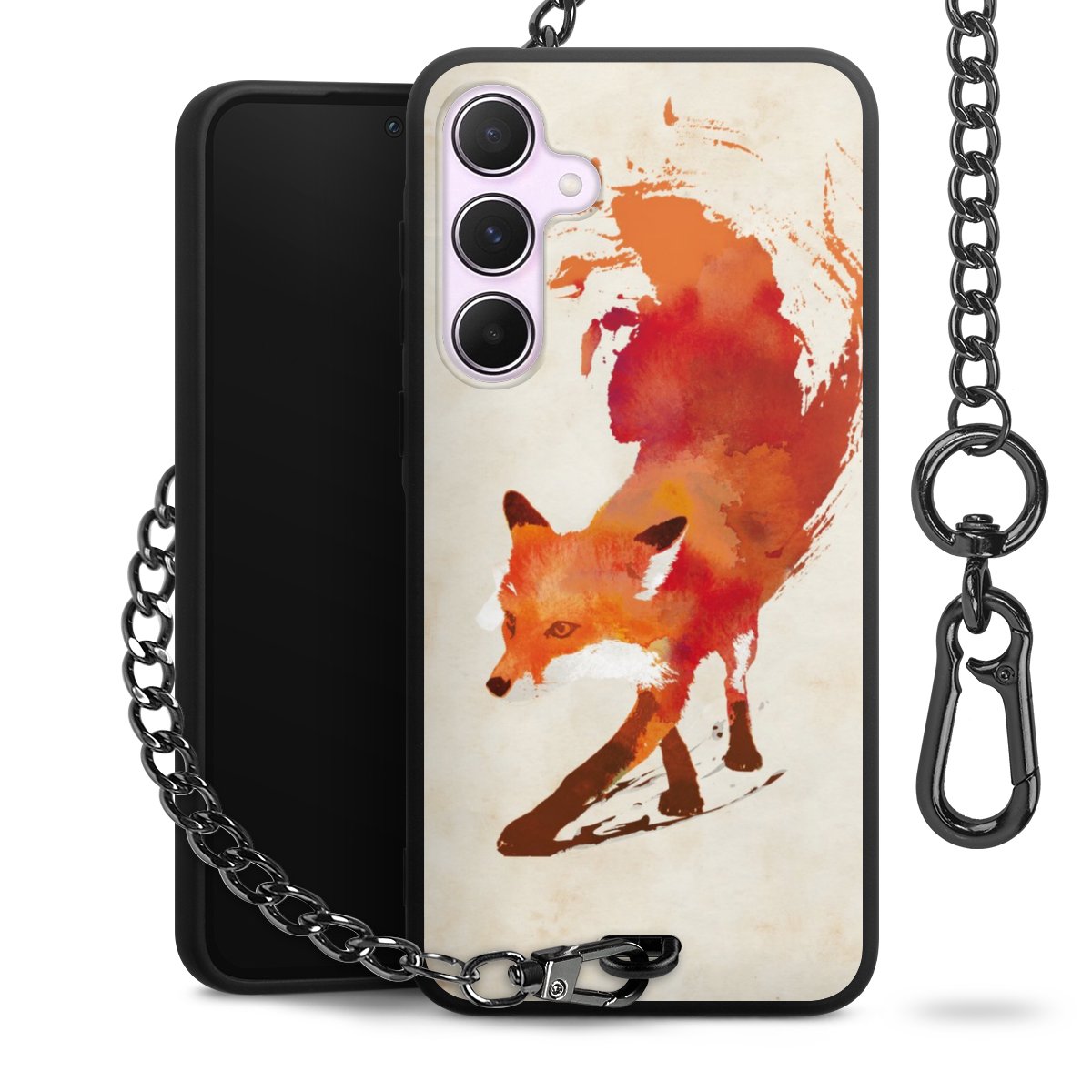 • Mattschwarze Handyhülle mit Metallkette