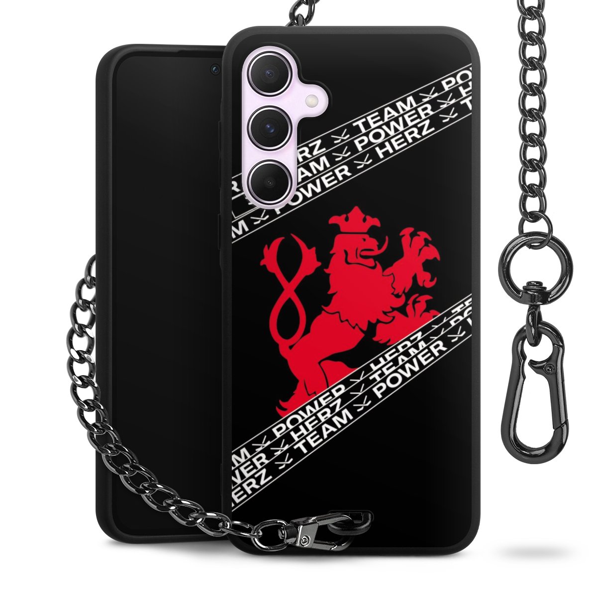 - Mattschwarze Handyhülle mit Metallkette