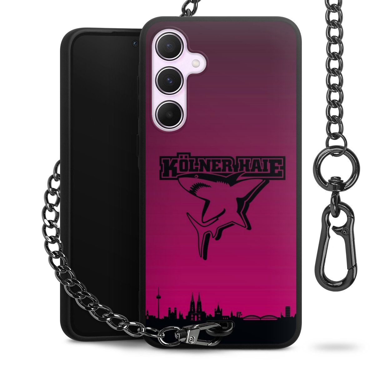 • Mattschwarze Handyhülle mit Metallkette