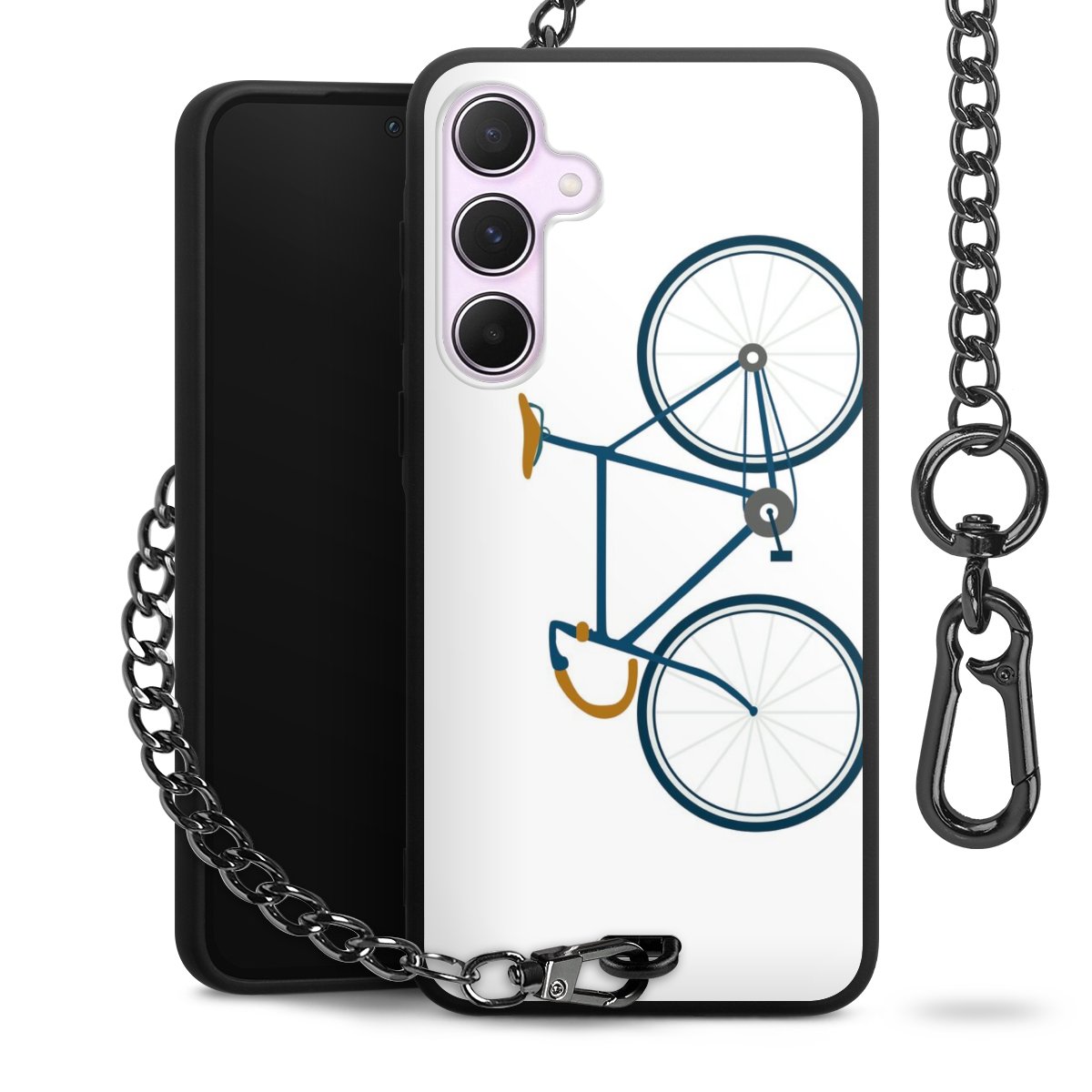 - Mattschwarze Handyhülle mit Metallkette