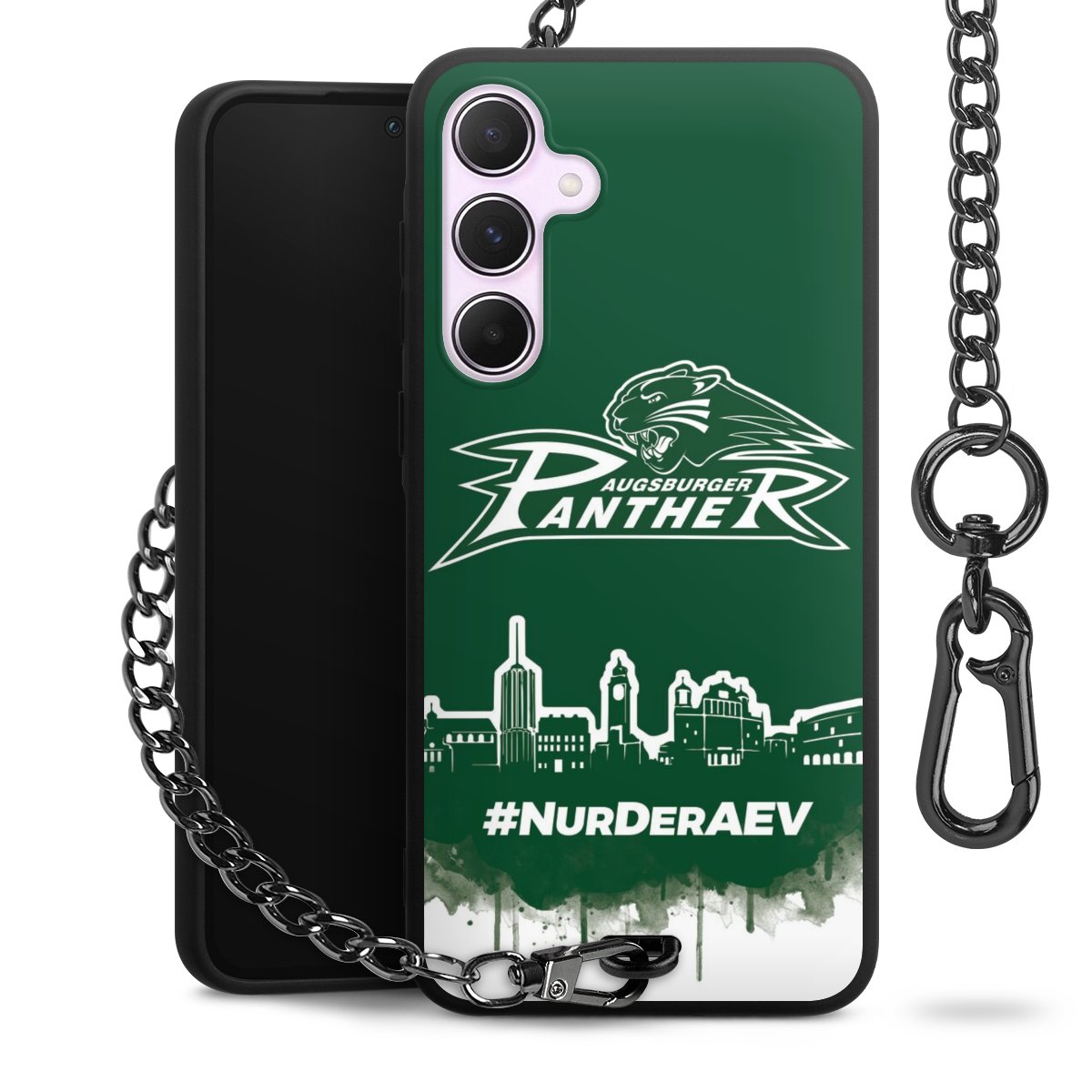 Die mattschwarze Silikon-Handyhülle besteht aus robustem TPU (thermoplastisches Polyurethan). Sie ist flexibel und schützt Dein Smartphone vor Stößen und Kratzern. Die Kette sowie der Karabinerhaken sind aus Metall in Gunmetal-Optik gefertigt. Für dieses Produkt kommen ausschließlich TÜV-geprüfte Materialien zum Einsatz.