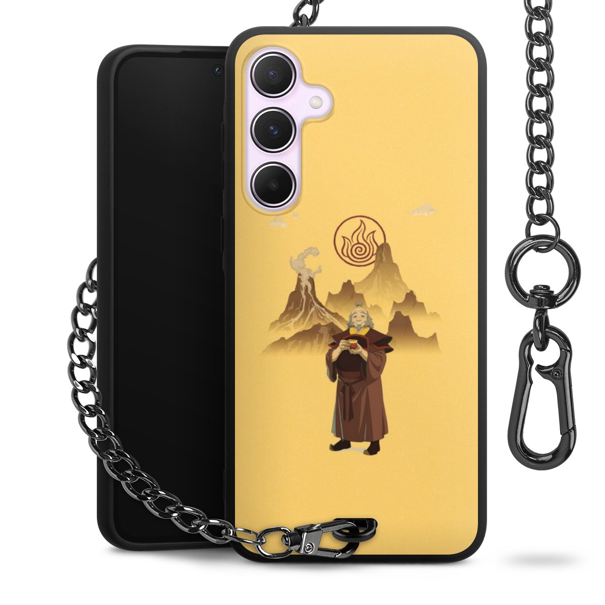 - Mattschwarze Handyhülle mit Metallkette