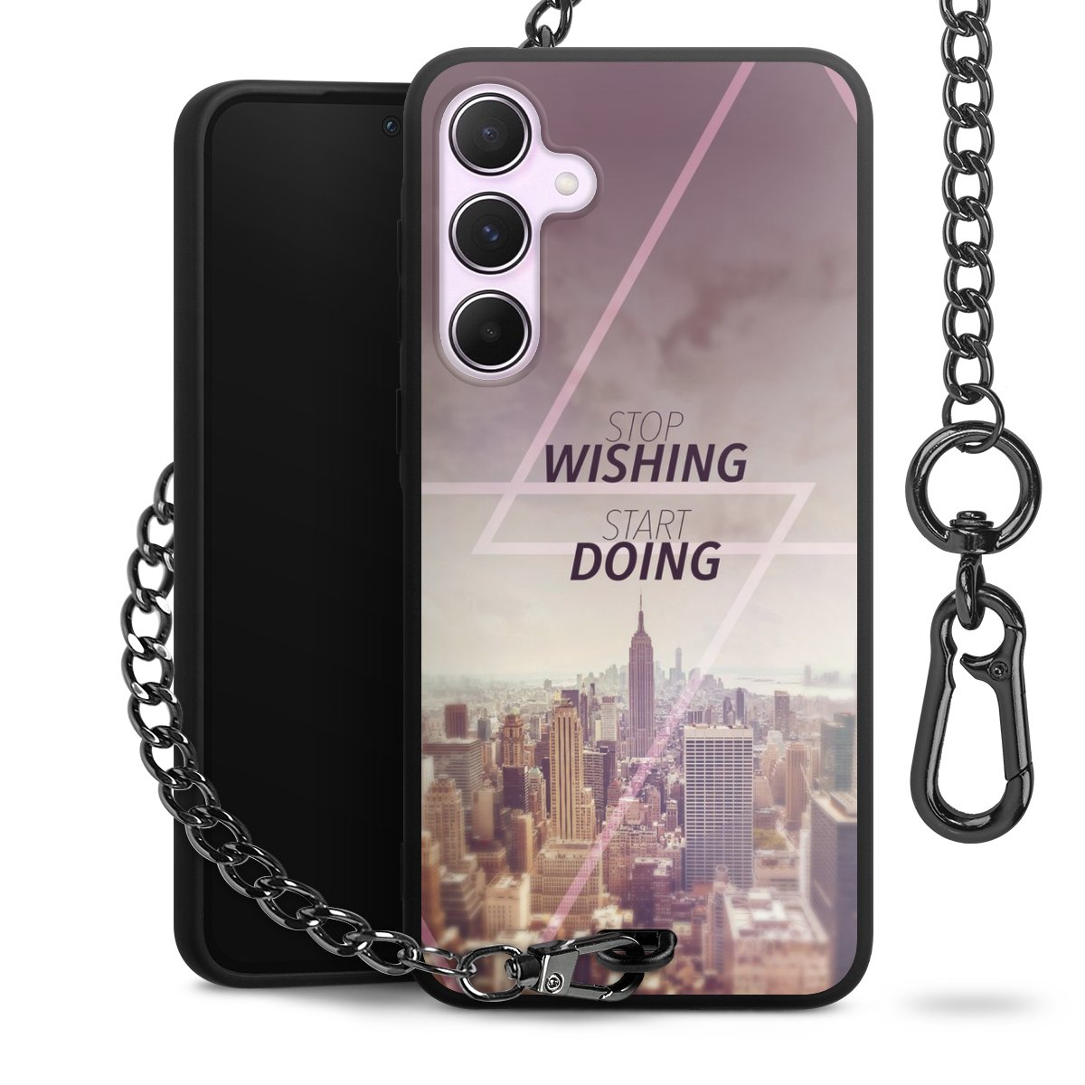 - Mattschwarze Handyhülle mit Metallkette