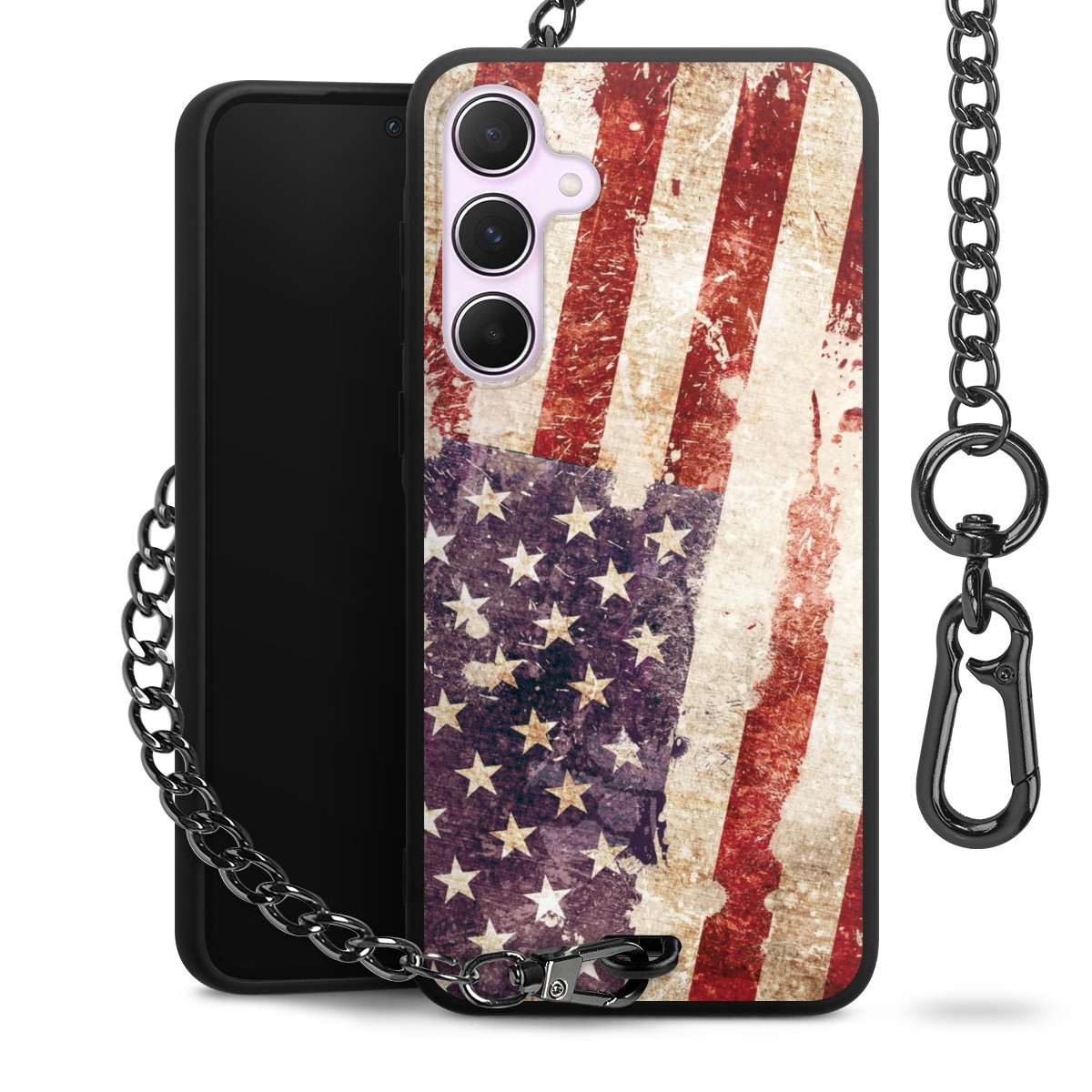 • Mattschwarze Handyhülle mit Metallkette